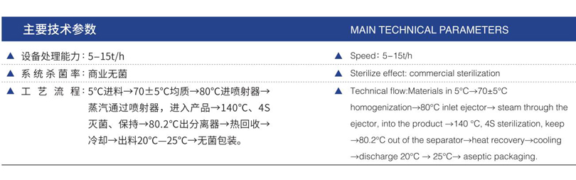 概述:產(chǎn)品先經(jīng)預(yù)熱后,蒸汽直接噴入產(chǎn)品,使產(chǎn)品在瞬時(shí)被加熱到設(shè)定溫度,經(jīng)過一定時(shí)間的保溫后,通過真空分離器把產(chǎn)品瞬間降溫,并等量蒸發(fā)掉因蒸汽噴入增加的水分,最后產(chǎn)品在無(wú)菌條件下冷卻、灌裝。