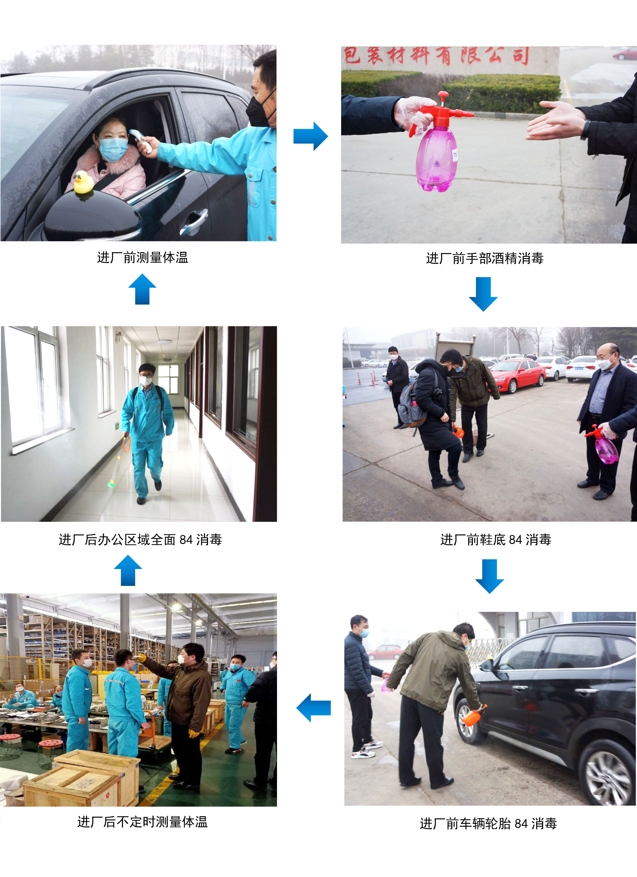 除了要求進廠人員測體溫、戴口罩、手部酒精消毒外;還利用臭氧發(fā)生器每天對餐廳、辦公區(qū)域、宿舍等進行定時消毒;主要出入口設置84浸泡鞋底消毒區(qū)域;對進廠車輛輪胎、駕駛室門把手、方向盤等酒精消毒;更換考勤方式,采用非接觸式藍牙打卡;取消集體住宿,對于復工人員實行“單人間”住宿管理;食堂延長供餐時間,分批就餐,一人一桌,全部朝一個方向就座;供餐、用餐區(qū)域定期消毒(早、中、晚用餐前后);生產(chǎn)車間采取輪班制、每天兩次測體溫;各辦公室配備醫(yī)用酒精各自消毒等措施。公司不遺余力的采取各種防護措施,努力恢復企業(yè)產(chǎn)能,在思想上、行動上高度一致,抗疫情保生產(chǎn),嚴要求高質量的生產(chǎn)出安全、優(yōu)質的產(chǎn)品,同時提供優(yōu)質的售后服務,及時解決乳品、飲料生產(chǎn)加工企業(yè)的生產(chǎn)問題,保障乳品、飲料生產(chǎn)企業(yè)正常生產(chǎn)出優(yōu)質的營養(yǎng)產(chǎn)品,滿足廣大消費者的營養(yǎng)需求。